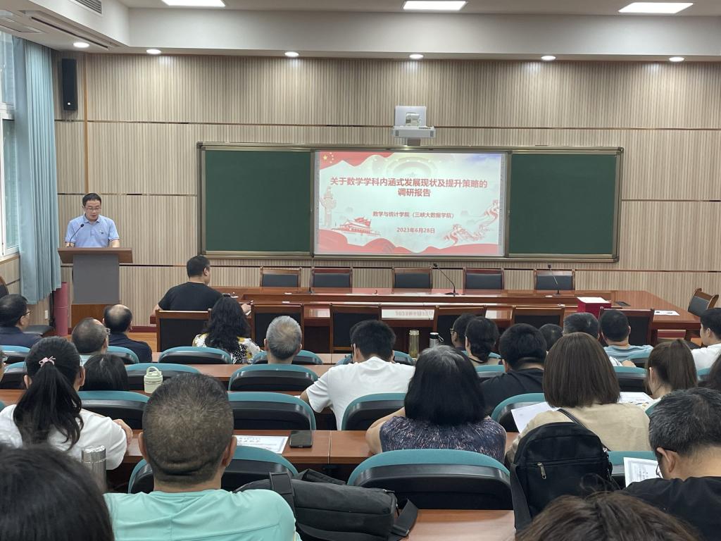 调研成果交流会总结阶段,学院院长熊江强调,44118太阳成tyc城集团(三峡大数据学院)将继续坚持以人为本,立足实际,着眼未来,充分利用现代科学技术,整合优质教育资源,挖掘当地特色,开设品牌专业,打造优秀的教师队伍,增强师资力量,营造良好的科研环境,促进学生全面发展,提升人才培养质量,推进学院数学学科内涵式发展,增强为经济建设和社会发展服务的能力;学院党总支书记黄明靖指出,自今年4月学校开展主题教育以来,学院党总支围绕44118太阳成tyc城集团(三峡大数据学院)数学学科内涵发展现状设定调研重点方向,分别以问卷调查、邀请专家来校指导、个别访谈、召开代表座谈会、研讨会等方式深入开展调查研究。本次调研内容充实、工作扎实,成效显著。