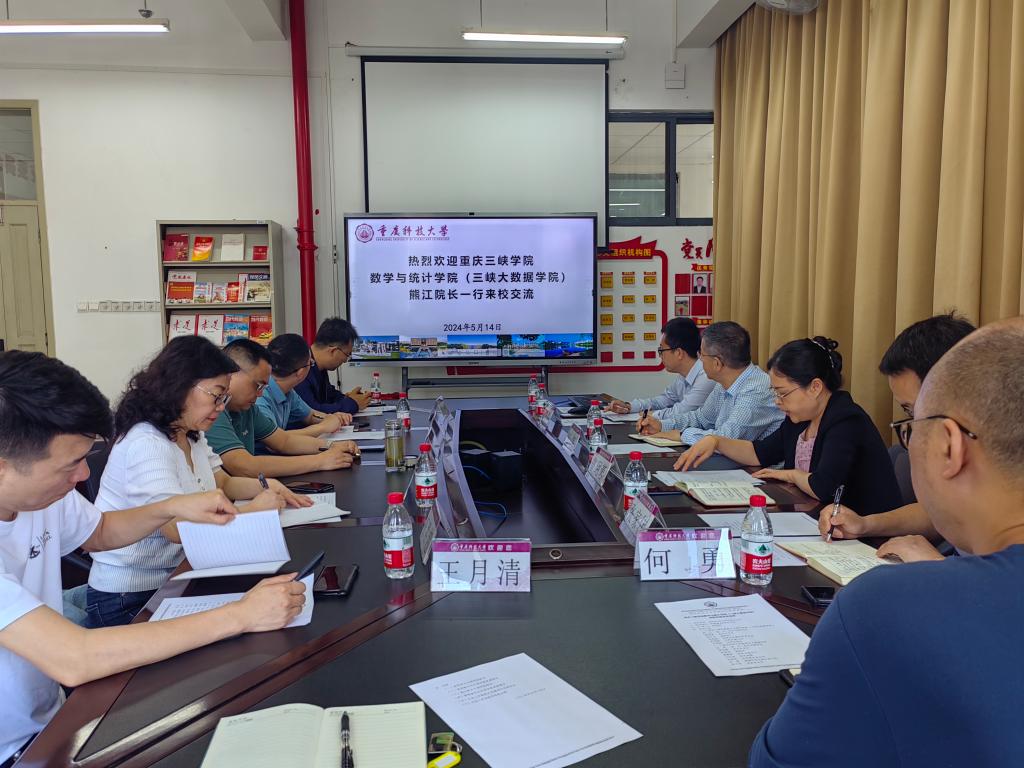5月14日,院长熊江教授带队、党总支书记黄明靖、副院长涂正文教授、信息与计算科学系主任刘金魁教授、学院党政办相关人员一行参加调研交流。重庆科技大学数理与大数据学院党政领导班子、系主任、党政办公室主任参加了交流会。