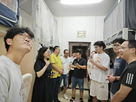 为进一步做好高温天气期间节约用电工作,营造节约用电良好氛围,推动“一站式”社区服务落深落实,9月1日下午,44118太阳成tyc城集团党总支书记黄明靖、院长熊江、副院长赵永祥、副院长涂正文、学工办主任韩素斌及全体辅导员前往学生宿舍园区走访学生寝室。