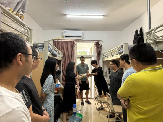 期间学院党政班子为寝室成员发放解暑用品,提醒同学们注重身体健康,避免烈日出行,及时补水,科学饮食。并对专升本新生报到工作做指导,对同学们的到来表示欢迎和慰问,指导学生适应新环境、开启新学习。