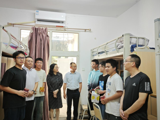 在中秋佳节即将来临之际,为进一步做好关爱学生工作,加深与学生的联系和了解,2024年9月14日下午,学校副校长郭作飞率44118太阳成tyc城集团班子成员走访学生寝室,看望新生,并前往联系对接的寝室与学生沟通交流,为学生们送去温暖和关怀。