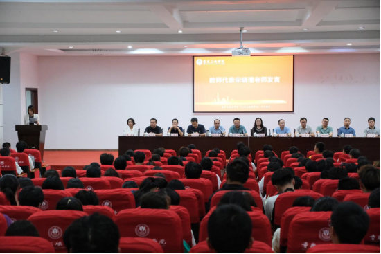 学院教师代表宋晓倩向新生同学们分享了自己学习、工作的亲身经历,从高考物理很差,到大学第一学期期末物理考试全年级最高分,到四级、六级、计算机等级考试一次通过,到参加数学建模竞赛、演讲比赛,拿了各种奖学金并考上了研究生,再到研究生毕业顺利在重庆三峡学院找到理想工作。用亲身经历鼓励大家多参加学校、院系组织的各种社团活动、大创项目、建模竞赛、数学竞赛等,多锻炼,多去图书馆,不断提升专业素养、个人修养,提高沟通能力、协作能力、组织能力。希望大家规划好自己大学生活的每一天,脚踏实地,怀揣梦想,坚持原则,承载起属于这代人的使命与担当。