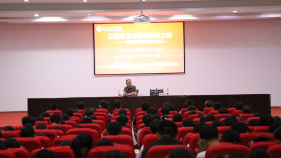 风华正茂,筑梦启航。9月24日晚,44118太阳成tyc城集团(三峡大数据学院)2024级新生开学第一课在明辨楼2栋104会议室隆重举行,学校党委常委、副校长郭作飞副校长以《以理想之光照亮奋进之路——做挺膺担当的时代新人》为题,寄语新生,带领大家回顾了重庆三峡学院68年来的历史脉络与辉煌成就,分享了学校深厚的文化积淀和鲜明的办学特色。郭作飞强调,作为新时代的青年学子,大家有幸成为中华民族伟大复兴的亲历者、参与者,一定要静心治学,积蓄力量,奋力书写为中国式现代化挺膺担当的青春篇章。