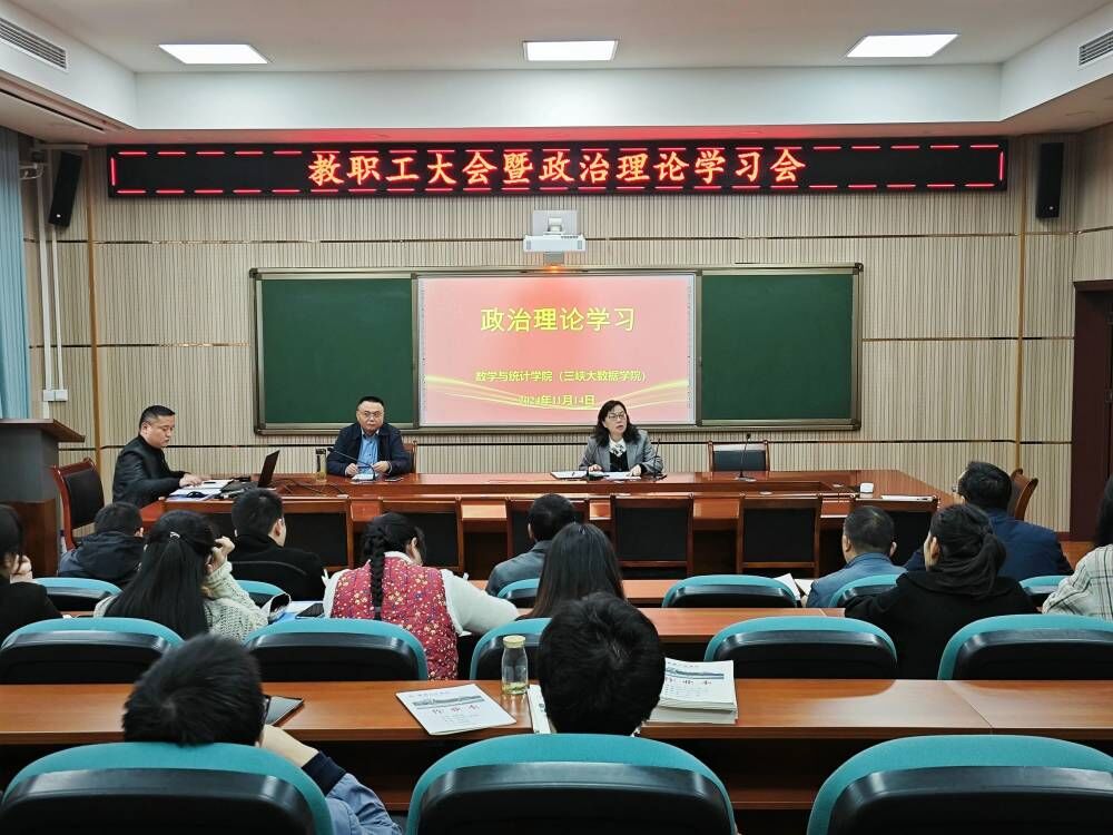 为深入学习习近平总书记重要讲话精神,进一步弘扬民族精神和时代精神,44118太阳成tyc城集团(三峡大数据学院)于 11 月 14 日下午 14:30 在明辨楼 1 栋 104 召开政治理论学习会,会议由学院党总支书记黄明靖主持,全体教职工参会,同时,学校教职工政治理论学习旁听工作组谭平老师列席会议。