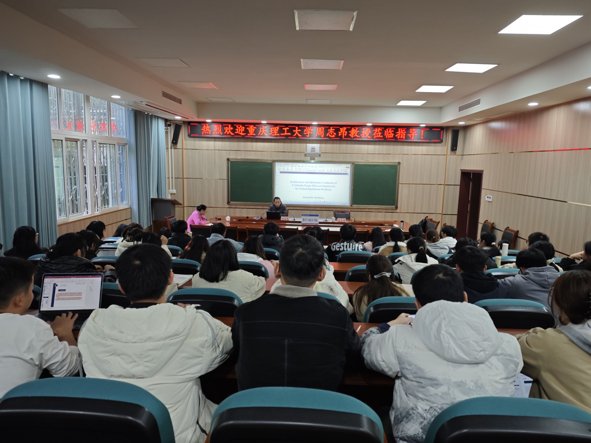 2024年12月29日,重庆理工大学理学院教授、硕士生导师、重庆英才.创新创业领军人才周志昂教授应邀来学院作“Scalarization and Optimality Conditions of E-Globally Proper Efficient Solution for Set-Valued Equilibrium Problem”学术讲座,周教授全程用英文开展讲解。学院部分教师、学术型研究生聆听了报告。
