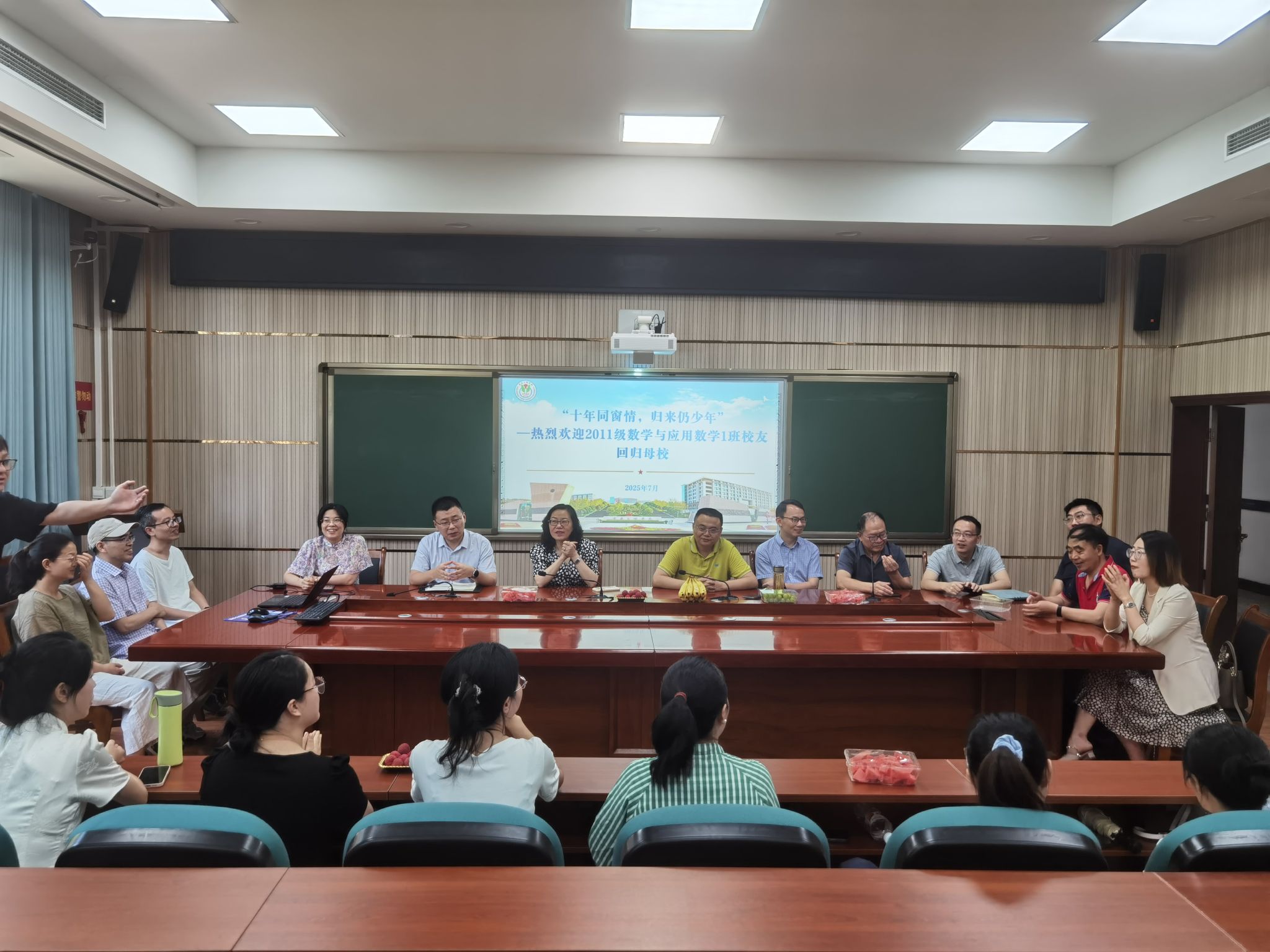 座谈会上,数统学院院长熊江欢迎大家回归,介绍了学院近十年在学科建设、人才培养等方面的成就,称毕业生是学院的宝贵财富。当年的班主任回顾了与同学们的过往,肯定大家的成长,希望大家常回母校看看。学校对外合作与交流处处长对校友们重返母校表示热烈欢迎,并盛情邀请大家在明年校庆70周年时再次荣返母校。