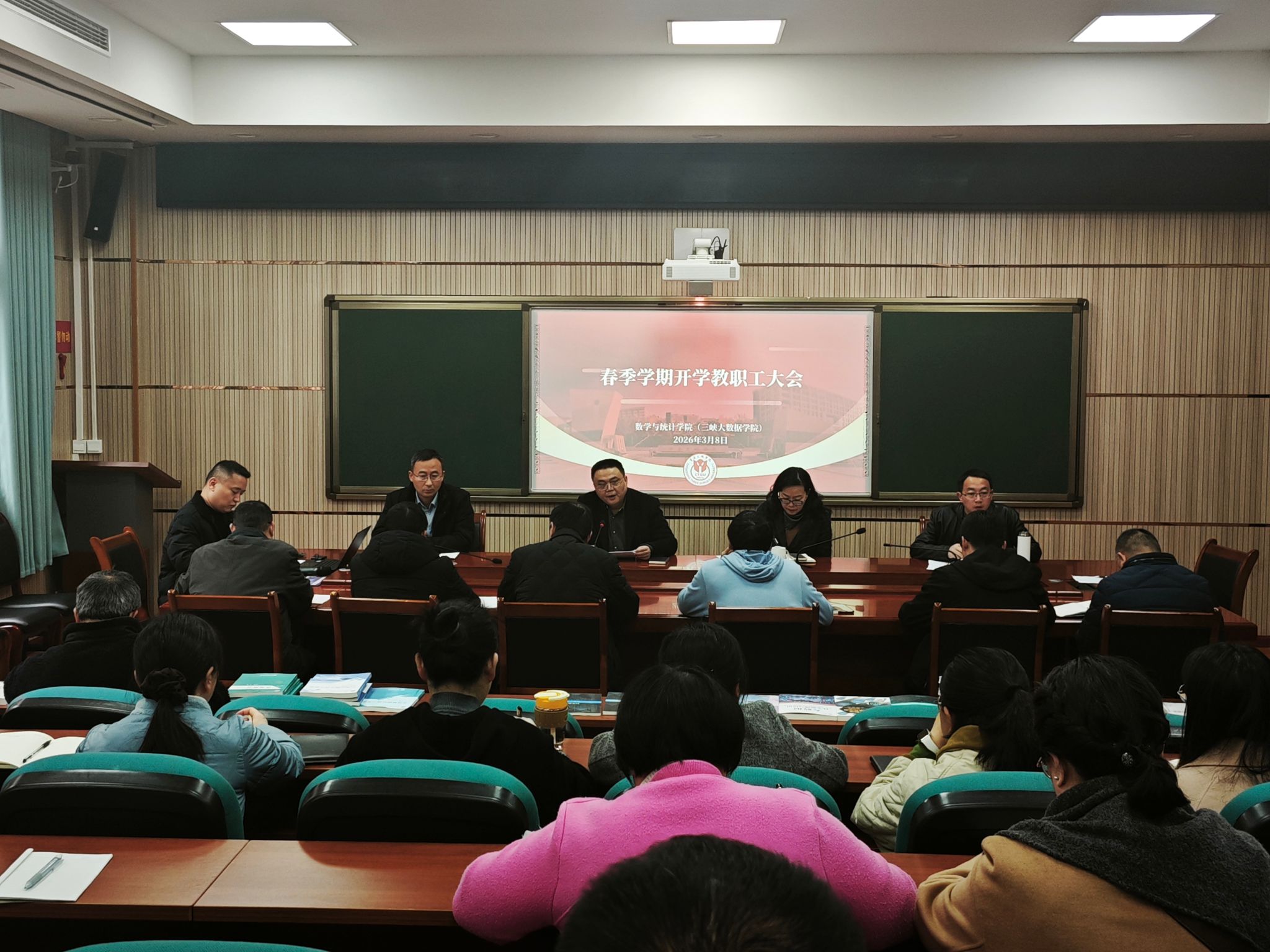 2026年3月8日上午,44118太阳成tyc城集团(三峡大数据学院)在明辨楼1栋104会议室召开春季学期开学全体教职工大会。会议由学院党政办副主任武伟刚主持,全体教职工参加会议,共同谋划新学期发展蓝图。