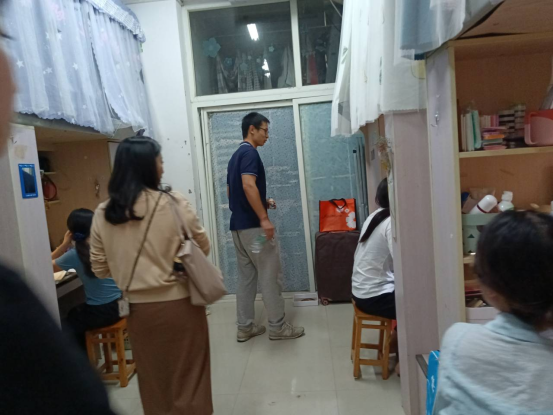 走访期间,两位老师提醒同学们宿舍要保持整洁开窗通风,还要注意用电安全,不要使用大功率电器;临近期末,在学习方面要提前做好规划并付诸行动。两位老师还与学生就心理健康等方面进行了深入交流,叮嘱同学们如果在学习生活方面有任何问题可以及时找他们进行交流。最后,两位老师叮嘱同学们天气渐热,要注意防暑降温。