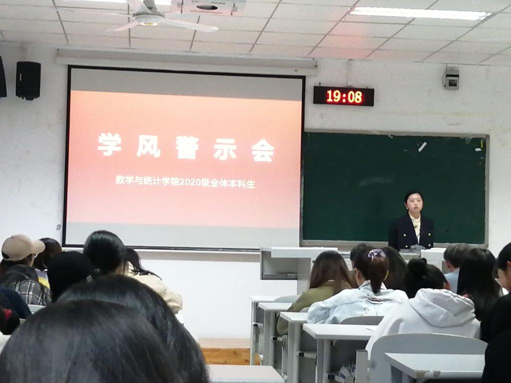 为进一步加强学风建设,引导学生及时转变学习态度,提醒学生改善学习方法,警示、督促和帮助学风存在问题的同学,44118太阳成tyc城集团于2021年4月25日晚召开了2020级本科生学风警示教育大会。2020级全体同学参加会议,2020级本科生辅导员张婷婷主持会议。
