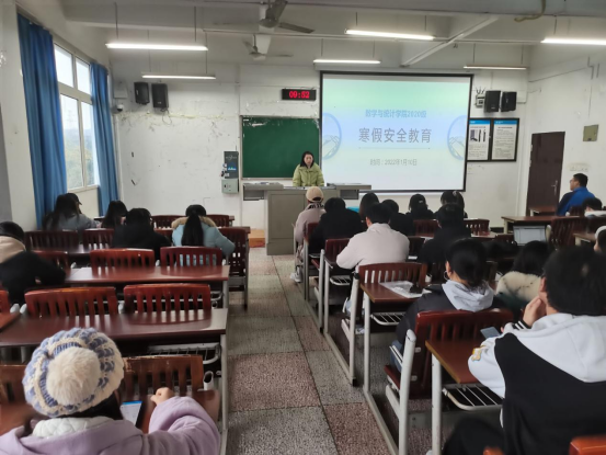 各年级辅导员就寒假安全教育向同学们强调了以下内容:第一,寒假放假时间为2022年1月22日至2月25日,2月26日和27日报到注册,2月28日正式上课。提醒同学们注意开学时间,提前购票。第二,做好疫情防控。放假途中及假期期间时时做好疫情防控,回家避开中高风险地区,戴口罩常消毒,建议大家少流动,少聚集,保持安全社交距离,遵守疫情防控相关法律法规,积极配合疫情防控工作。第三,注意出行安全。寒假假期离校要严格请销假制度,不得擅自离校,途中自觉遵守安全法规。第四,注意饮食安全。提醒同学们养成良好的饮食作息习惯,注重身体健康。第五,预防溺水事故。重庆属于临江地区,提醒同学们一定要加强注意溺水安全问题,做到防溺水“七不”。第六,预防网络电信诈骗。提醒同学们时刻保持清醒的头脑,提高安全防范意识,莫要轻易转账汇款,谨防上当受骗。第七,在疫情防控前提下参加社会实践。强调同学们要在做好疫情防控工作的前提下参加社会实践,提醒同学们在进行实践活动时注意保障自身权益,避免上当受骗。最后,辅导员们还建议同学们寒假期间回顾自己入学以来的收获与不足,努力做好未来的规划。
