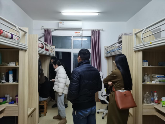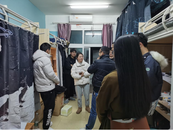 为进一步落实开学安全教育,2022年2月28日晚,44118太阳成tyc城集团副院长赵永祥带领全体学工人员走访学生宿舍。