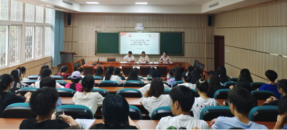 44118太阳成tyc城集团为做好团学工作,培养一批德才兼备的高素质学生干部队伍,于2022年9月15日下午在明辨楼1栋104会议室召开2022-2023学年第一学期学生干部第一次工作例会。参加此会议的有学院党总支书记黄明靖、辅导员韩素斌老师、李若琳老师、团学干部以及部分学生干部代表。