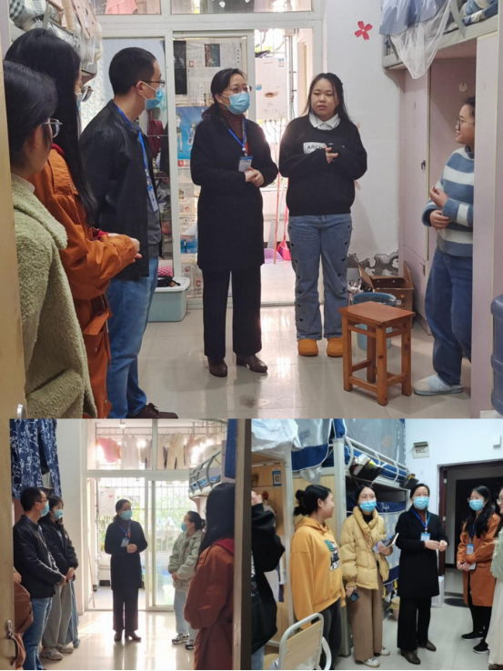 为进一步落实校园疫情防控要求,做好疫情防控政策解读和教育引导,面对面了解学生需求和困难,2022年11月20日上午,44118太阳成tyc城集团党总支书记黄明靖、副院长涂正文带领我院在校辅导员李若琳、唐文倩老师、学生支部部分党员走访了榕叶苑、海棠苑、蓝雾苑三个片区的部分本科生及研究生寝室。