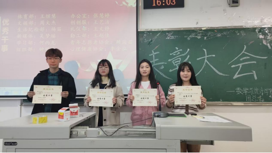 第一项议程是表彰优秀干事,他们积极工作、坚持努力、学习工作两不误,积累了丰富的工作经验。