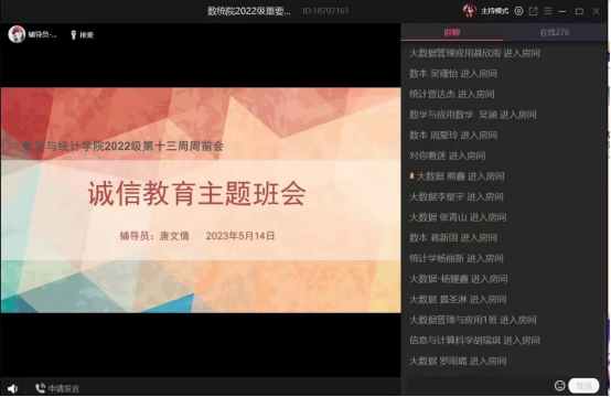 2023年5月学院各年级分别开展“感恩于心,诚信于行”主题班会,各年级辅导员为学生们讲解奖助学金申请过程的真实性及合理规划资助金谨防诈骗,引导学生树立“讲诚信、知感恩、靠自强、防诈骗”的意识和道德观念。