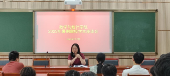 为全面落实7月6日全市暑假学生安全工作视频会精神,提高暑期留校学生的安全意识,切实保障2023年暑假留校管理工作有序开展,7月7日上午,44118太阳成tyc城集团在明辨楼1-104会议室召开2023年暑期留校学生座谈会,学院党总支书记黄明靖、学工办主任韩素斌、全体辅导员及全体暑假留校学生参加。