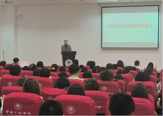 首先,涂院长介绍学院学风建设中的相关事宜,提出对照“优良学风班创建验收考评标准”,营造以学生为主体,以创新为使命,以学风滋校风,以质量为根本的优良学风建设目标。