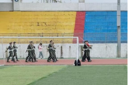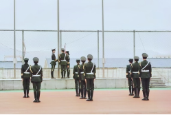 早上7时整,国旗护卫队英姿飒爽,在《义勇军进行曲》中踏着雄健步伐,护送五星红旗至升旗台。他们目光炯炯,步履如钟,尽显国旗班风采与对国旗的崇敬之情。