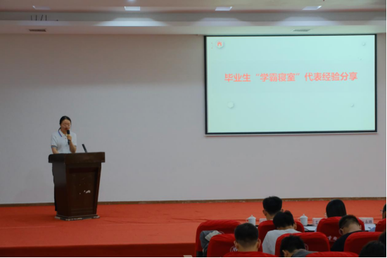 2020级毕业生熊云环作为毕业生“学霸寝室”代表在活动中为全体同学分享宿舍团结学习的经验,她从寝室文化、团结互助、学习策略等方面分享大学期间寝室成员之间互相激励、不断进步的心得,以典型案例激励全体同学砥砺前行,在人生的舞台上绽放光彩。