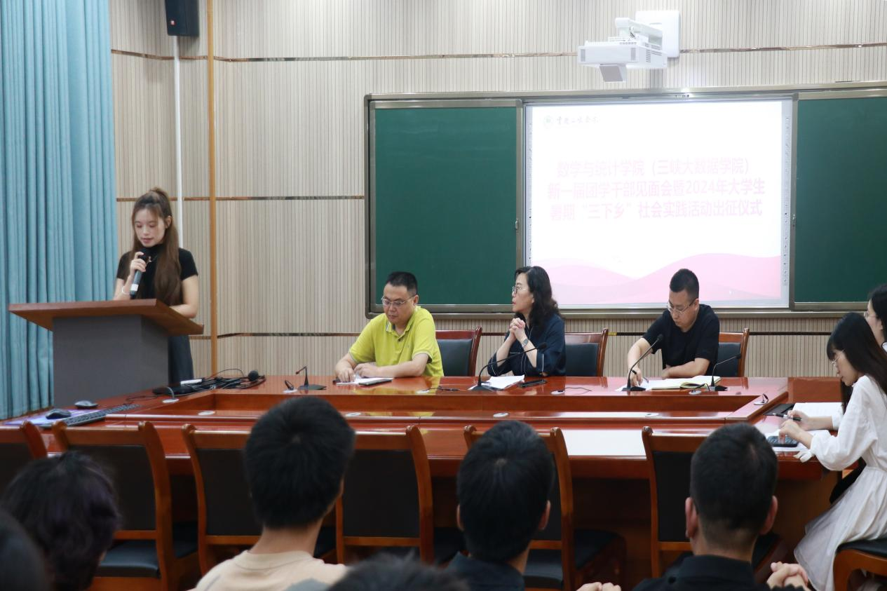 为深入学习贯彻习近平新时代中国特色社会主义思想和党的二十大精神,学习宣传贯彻习近平文化思想、习近平总书记五四青年节对全国广大青年寄语精神,引导和帮助青年学生在社会课堂中受教育、长才干、作贡献,争做有理想、敢担当、能吃苦、肯奋斗的新时代好青年。7月5日下午,44118太阳成tyc城集团(三峡大数据学院)在明辨楼1栋104会议室召开新一届团学干部见面会暨2024年大学生暑期“三下乡”社会实践活动出征仪式。学院党总支书记黄明靖、院长熊江、各年级辅导员、新一届团学干部及2024年大学生暑期“三下乡”社会实践团成员参会,会议由团总支副书记韩素斌主持。