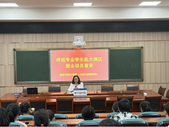 为充分调动师范专业学生赴大湾区就业的积极性,拓宽就业渠道,全力促进我院毕业生更加充分更高质量就业。近日,44118太阳成tyc城集团在明辨楼1栋104会议室开展师范专业学生赴大湾区就业动员宣讲,全体2025届师范专业学生参加,就业专干、2025届毕业班辅导员张婷婷主持。