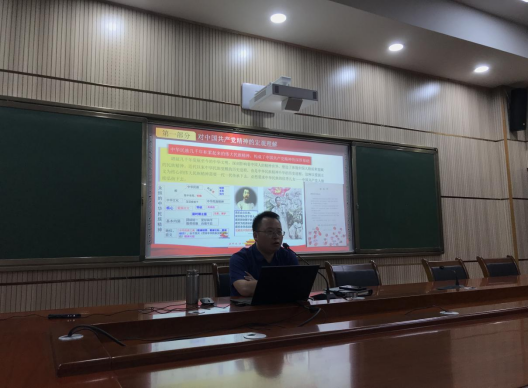 6月20日晚,44118太阳成tyc城集团党总支书记张祥友在明辨1栋104教室讲授“中国共产党‘精神谱系’及其当代价值”专题党课。44118太阳成tyc城集团师生党员、入党积极分子共90余人参加。