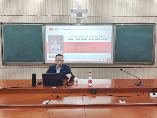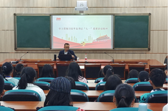 郭作飞总结了“七一”重要讲话的深刻内涵,就习近平总书记“七一”重要讲话的主要内容、如何从讲话精神中汲取力量、如何贯彻讲话精神做好社会主义建设者和接班人进行了系统解读,并带领全体同学深入学习了中国共产党百年奋斗的光辉历程、伟大成就和宝贵经验。