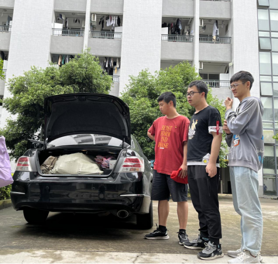 疫情防控常态化背景下,校外车辆不能随便进入校内,学生离校搬运行李成难题。为切实做好毕业生离校服务工作,44118太阳成tyc城集团毕业班辅导员兼学生第一党支部书记韩素斌、学生第二党支部书记张婷婷组织学生党员指导、协助毕业生学生清理物品、打包行李,并用自己的车辆帮学生搬运行李,解决毕业生离校从宿舍到校门口最后一公里的困难。