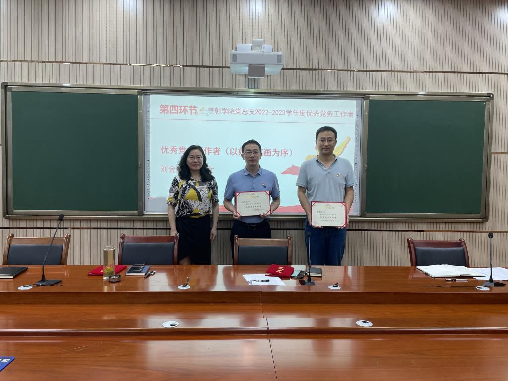 接下来,学院副院长、党总支副书记涂正文同志宣读表彰文件,学院领导为2022-2023学年度优秀党员、优秀党务工作者颁发荣誉证书和奖品。优秀教师党员代表张京友、学生党员代表石力熙做先进事迹宣讲报告。