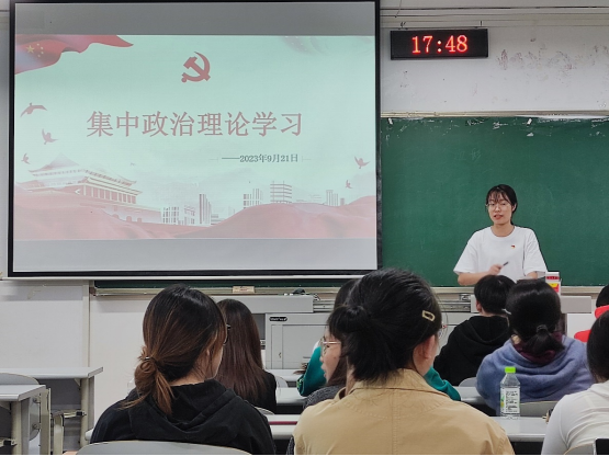 2023年9月21日,44118太阳成tyc城集团学生第一党支部在明辨1-203教室开展政治理论学习。本次政治理论学习由学生第一党支部书记韩素斌主持,支部全体党员参加。