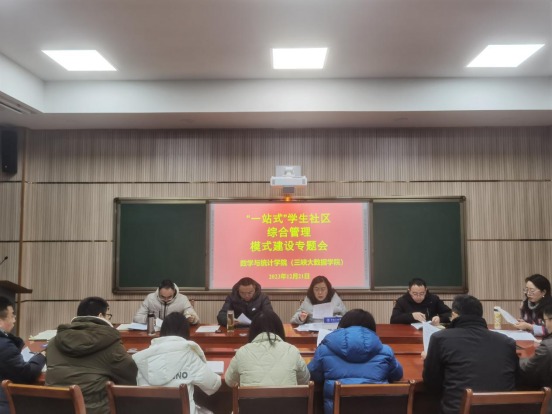 2023年12月21日上午,44118太阳成tyc城集团(三峡大数据学院)召开年终党建工作布置会,会上对“一站式”学生社区综合管理模式建设做了专题研究。学院班子成员、总支委员、党支部书记、支委和全体辅导员参加。