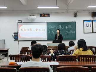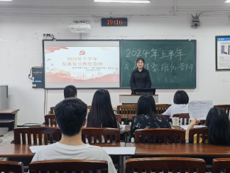 为做好党员发展工作,确保党员发展质量,44118太阳成tyc城集团党总支于2024年4月28日晚上在明辨楼1栋503教室开展了2024年上半年党员发展推优答辩会。本次答辩会由学院党总支组织委员、学生第一党支部书记韩素斌主持,党总支青年委员张京友、学生第二党支部书记张婷婷、学生第三党支部书记王岚、学生第一党支部宣传委员唐文倩及第十七期发展对象共同参加。