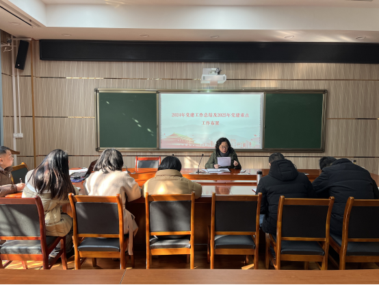 黄书记总结了学院党总支2024年度党建工作开展情况并就2025年学院党建重点工作做了强调。第一要加大在高层次人才和中青年骨干教师中发展党员的力度,完善联系跟踪培养制度,形成党总支—党支部—联系人三级抓落实的工作格局,保质增量做好党员发展工作;第二要以点带面开展党建“双创”赛马比拼,“育梯队、抓重点、立标杆”,在孵化培育学院“双创”样板支部上有成效。