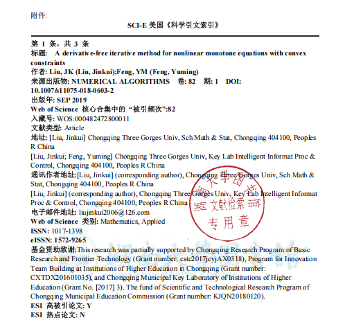 近日,Essential Science Indicators(简称ESI)2025年7月最新统计结果揭晓,我院刘金魁教授作为第一作者及通讯作者发表的论文《A derivative-free iterative method for nonlinear monotone equations with convex constraints》成功入选ESI高被引论文,这一成果标志着我院在数学学科领域的研究获得国际学界高度认可。