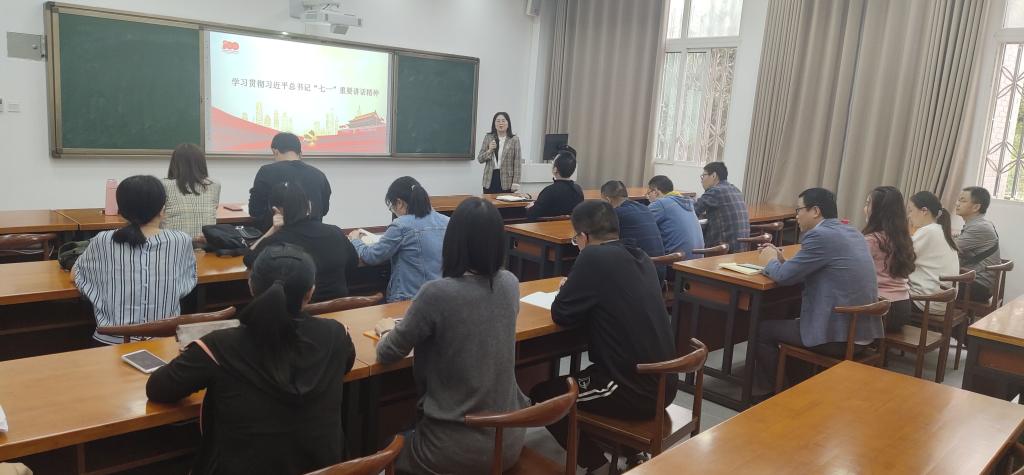 为深入学习理解习近平总书记“七一”讲话精神,更好地将“七一”讲话精神贯彻到工作实际,10月14日,教工党支部书记吴艳秋以上党课的形式就习近平总书记“七一”重要讲话精神进行宣讲,支部全体党员参加了会议。